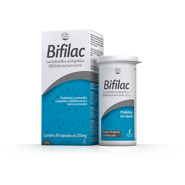 Bifilac ?? um suplemento probi??tico que atua ao longo de todo o intestino, combinando Lactobacillus acidophilus NCFM?? (com a????o principalmente no intestino delgado) e Bifidobacterium lactis HN019?? (com a????o no intestino grosso).